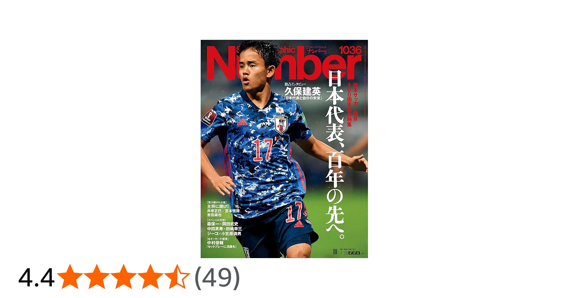 日本サッカー協会100周年記念特集 日本代表、百年の先へ。 「日本代表と自分の未来について」 鎌田大地/田中碧 「ビッグクラブで勝者のメンタリティを」 代表キャプテンの掟 加藤久/井原正巳 宮本恒靖/吉田麻也 アジア予選が日本を強くした 森...