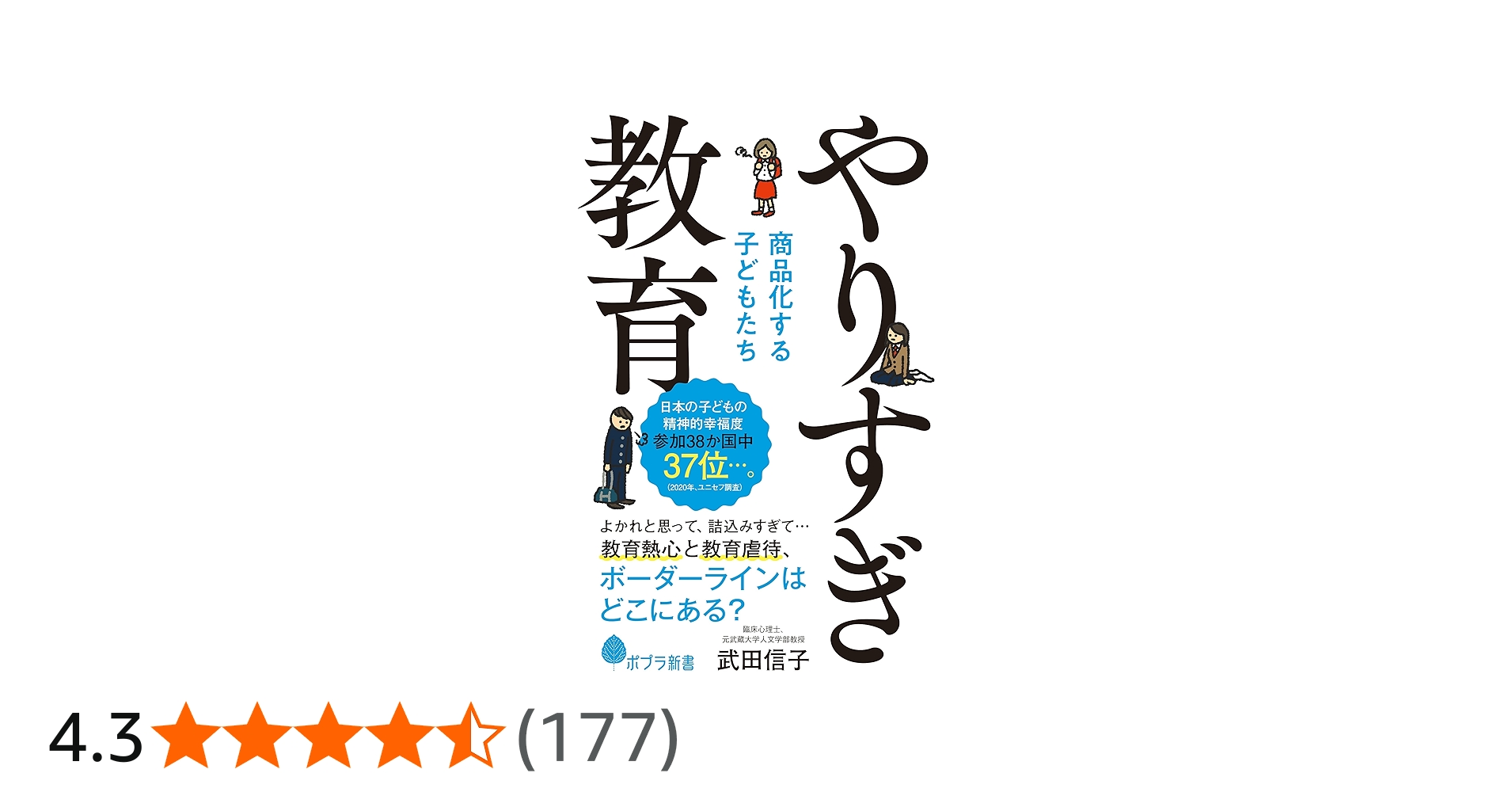 大人たちの過度な期待と強制で、精神的健康度が低下している子どもたち。将来への不安が日本人を追い詰め、教育の名の下に、大人が子どもの健全な育ちを奪っている。「教育熱心」と「教育虐待」の境目は? 親、教師、子どもたちを救うために社会何ができるの...