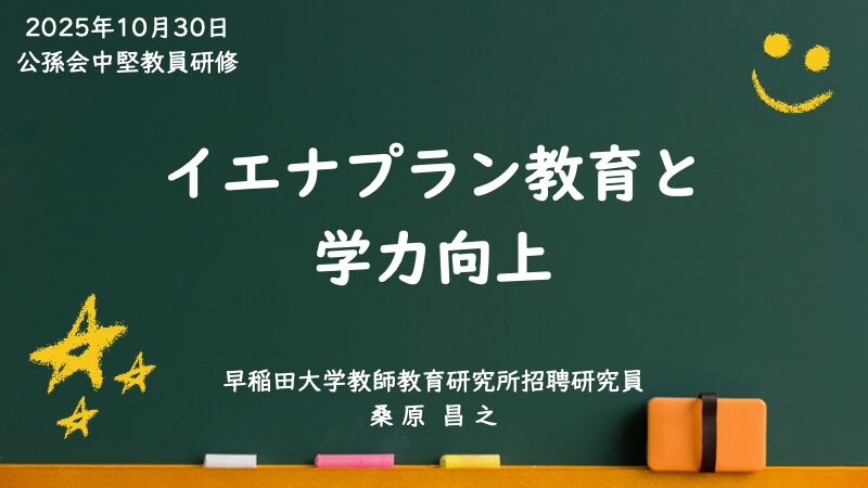 研修テーマは「イエナプラン教育のよさを生かした指導〜妙高型イエナプラン教育で学力は上がるのか?〜」