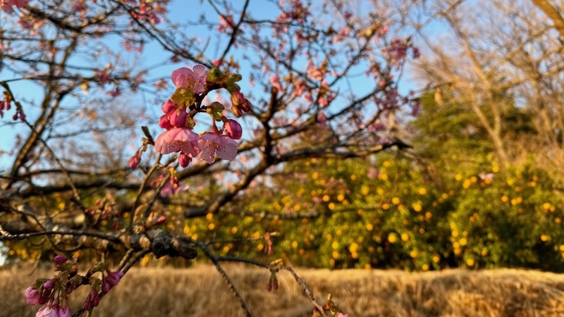 朝ランのコースにある河津桜が開いてきている。